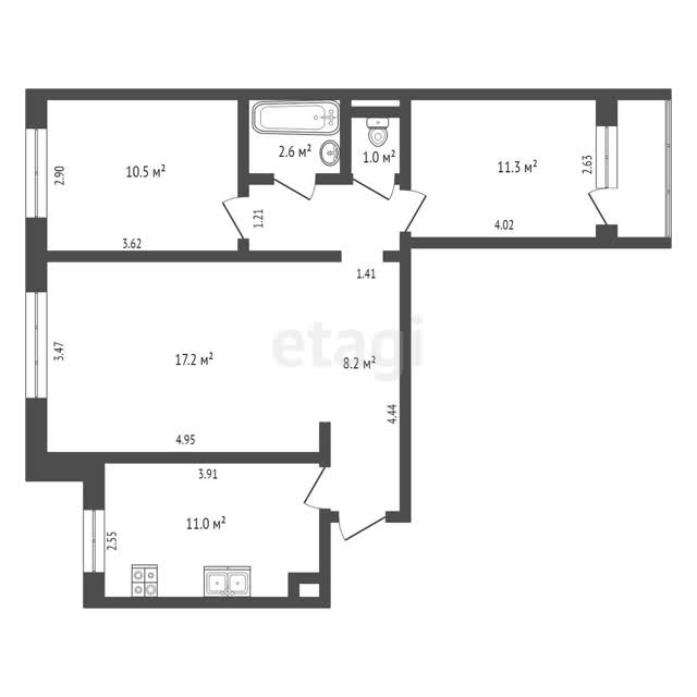 - Общая площадь63.3 м²