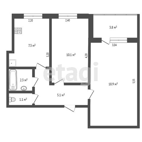 - Площадь кухни7.3 м²