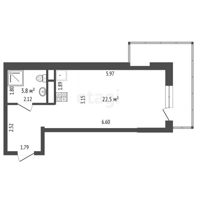 В продаже уютная большая видовая квартира-студия общей площадью 30.8 м2 в ЖК бизнес-класса "Первый".