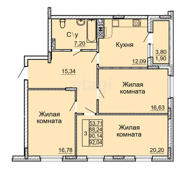 В ипотеку от 40 768 руб./мес.3-комн. кв.90.14 м21/5 эт.