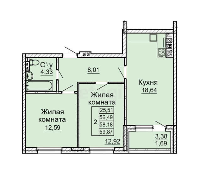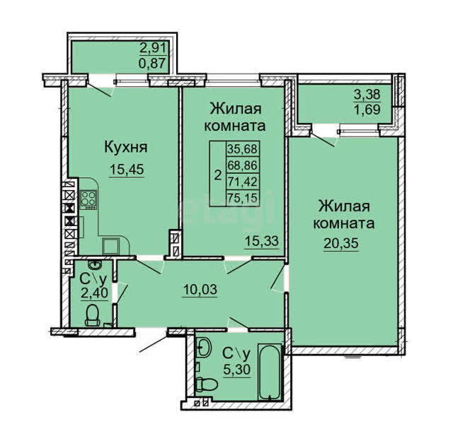 В ипотеку от 33 435 руб./мес.2-комн. кв.71.12 м24/5 эт.