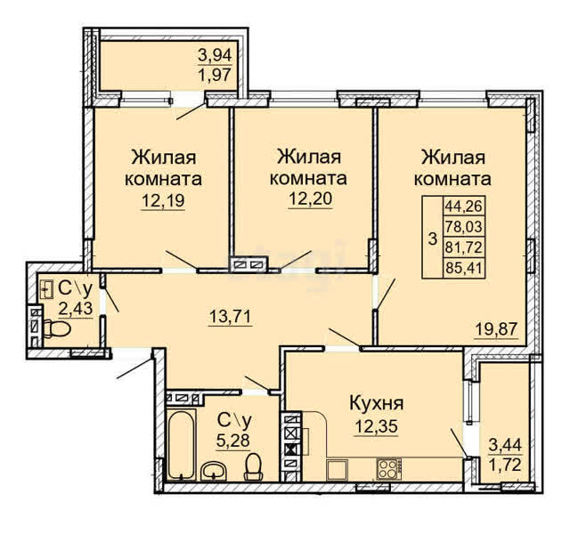 В ипотеку от 42 360 руб./мес.3-комн. кв.71 м21/1 эт.